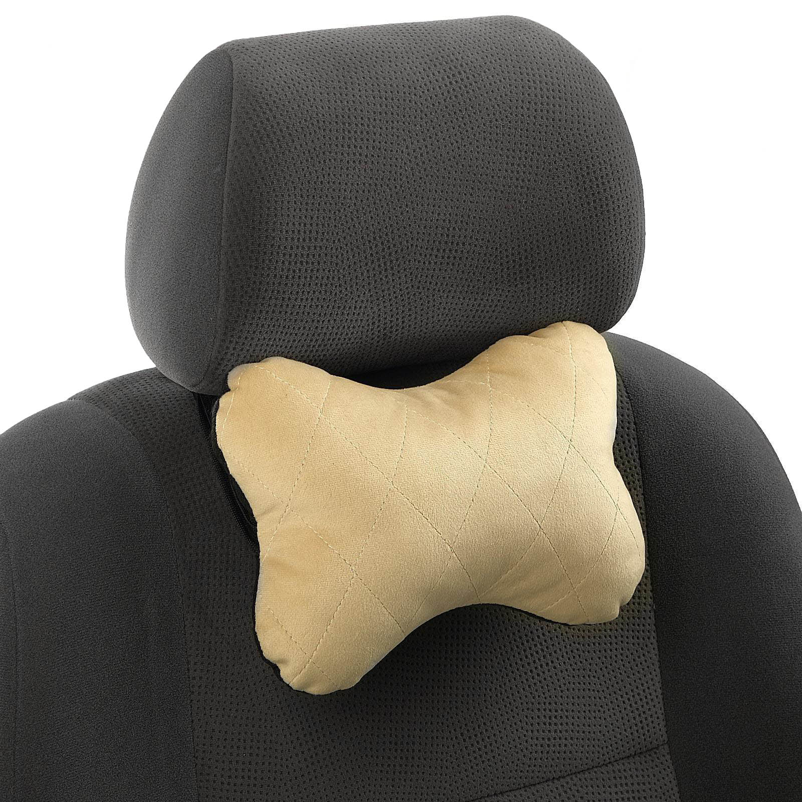 яяяПодушка автомобильная косточка, на подголовник, велюр, бежевый, ромб, 16х24 см 5296765