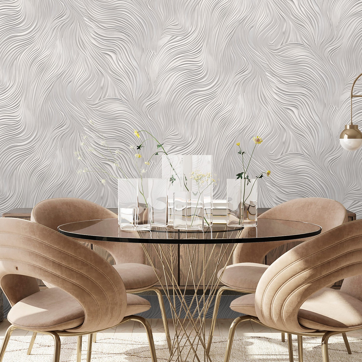 рулГлавная роль в коллекции ARIA от Victoria Stenova, безусловно, принадлежит полупрозрачной ветке, выполненной слегка небрежном итальянском стиле, без строгой симметрии, присущей строгим классическим дизайнам обоев. Роскошный и ненавязчивый дизайн в жемчужной гамме смотрится очень целостно и органично в современном интерьере. Люди, выбирающие неоклассические интерьеры, характеризуются как успешные и рассудительные приверженцы традиций. Но наши обои одинаково уместны и в огромной гостиной с 3-х метровыми потолками и в маленькой спальне с потолком 2.5 метра. Мы декларируем тренд на шелковое сияние полотна, на благородные светлые переливающиеся фактуры, при производстве этой коллекции мы используем только перламутры и металлизированные краски. Сложное, многоуровневое тиснение фона словно светится изнутри, в этом проекте мы выбрали тактику максимального объединение центрального элемента и фона, уделив одинаковое внимание в проработке и использовании декоративных эффектов на всей фактуре в целом.