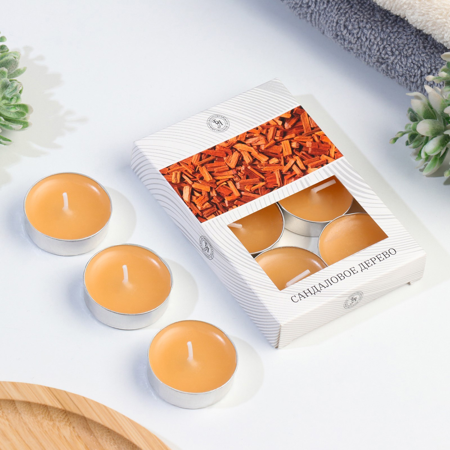 Набор свечей ароматических чайных «Сандаловое дерево», в подарочной коробке, 6 шт.