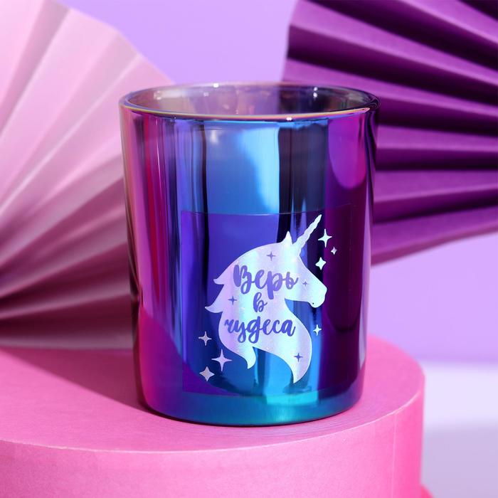 Свеча в голографическом стакане «Верь в чудеса», 8,5 х 8 х 8 см 5077511