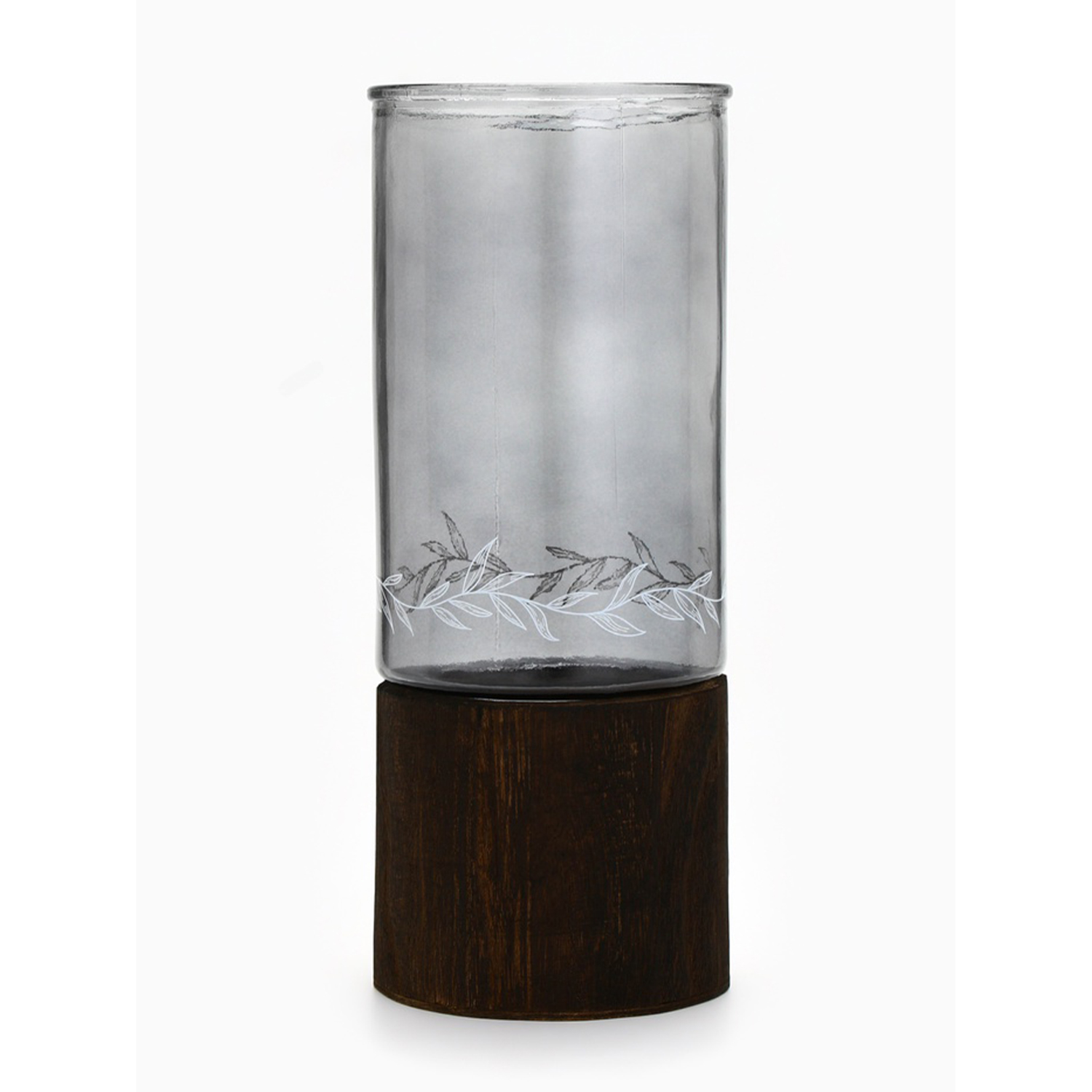 Ваза для цветов с деревянной подставкой из темного стекла, 25.5×10 см, 1.25 литра