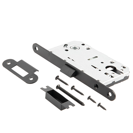 Защелка врезная п/ручку и цил.мех. ЧЕРНЫЙ матовый БЕСШУМНАЯ 5300-Р-BLM Апекс *1/5/40