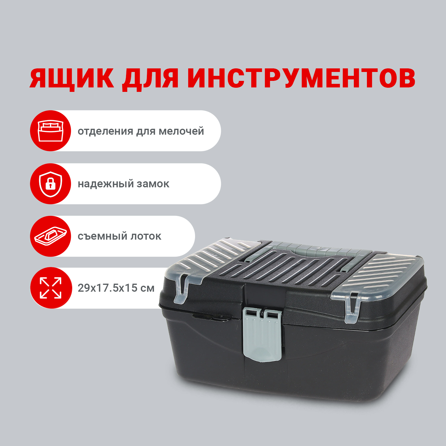 Ящик для инструмента 290х175х150 мм Альтернатива, пластик, черный
