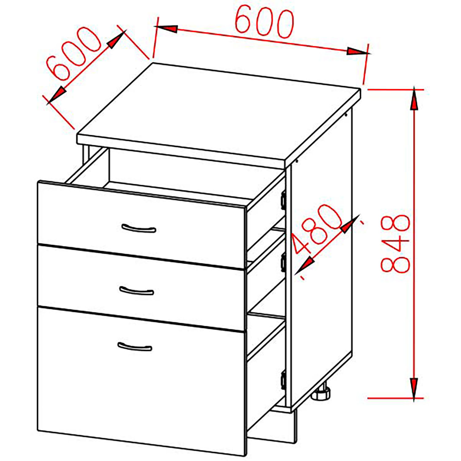 Шкаф напольный 600х850х600 мм BROZEX-WOOD Next, с тремя ящиками, графит