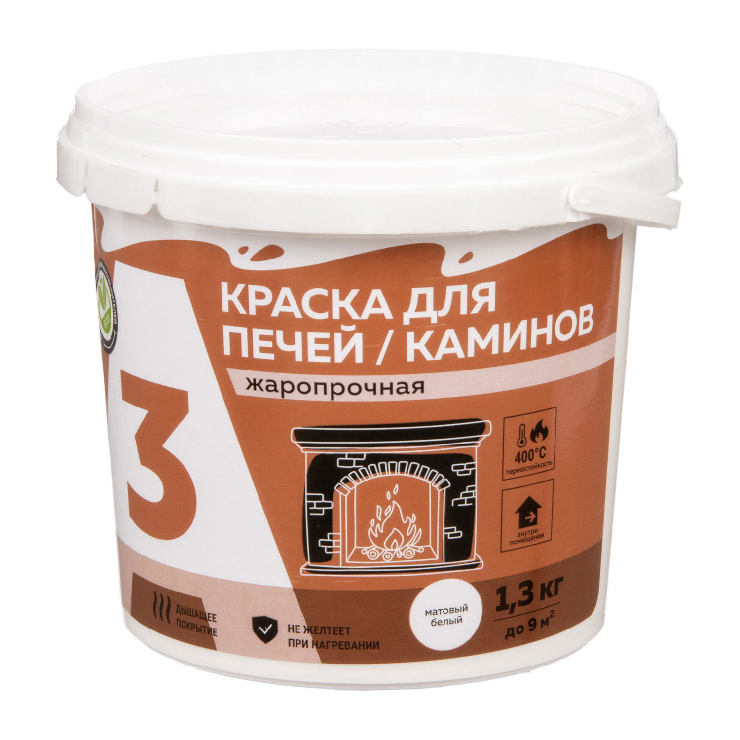 Краска для печей и каминов А3 белая 1.3 кг — жаропрочный водно-дисперсионный состав термостойкостью до +400 °С. Образует твердое износоустойчивое покрытие. Сертифицирована в области пожарной безопасности, класс пожарной опасности — КМ1.