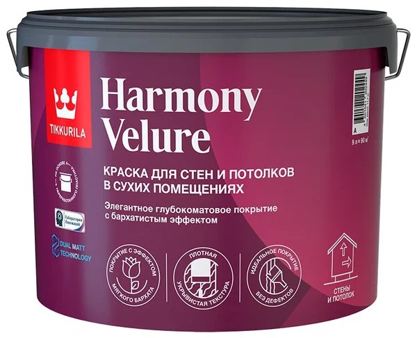 Краска акриловая для стен и потолков "Tikkurila" Harmony Velure база А 9 л глубокоматовая *1/44