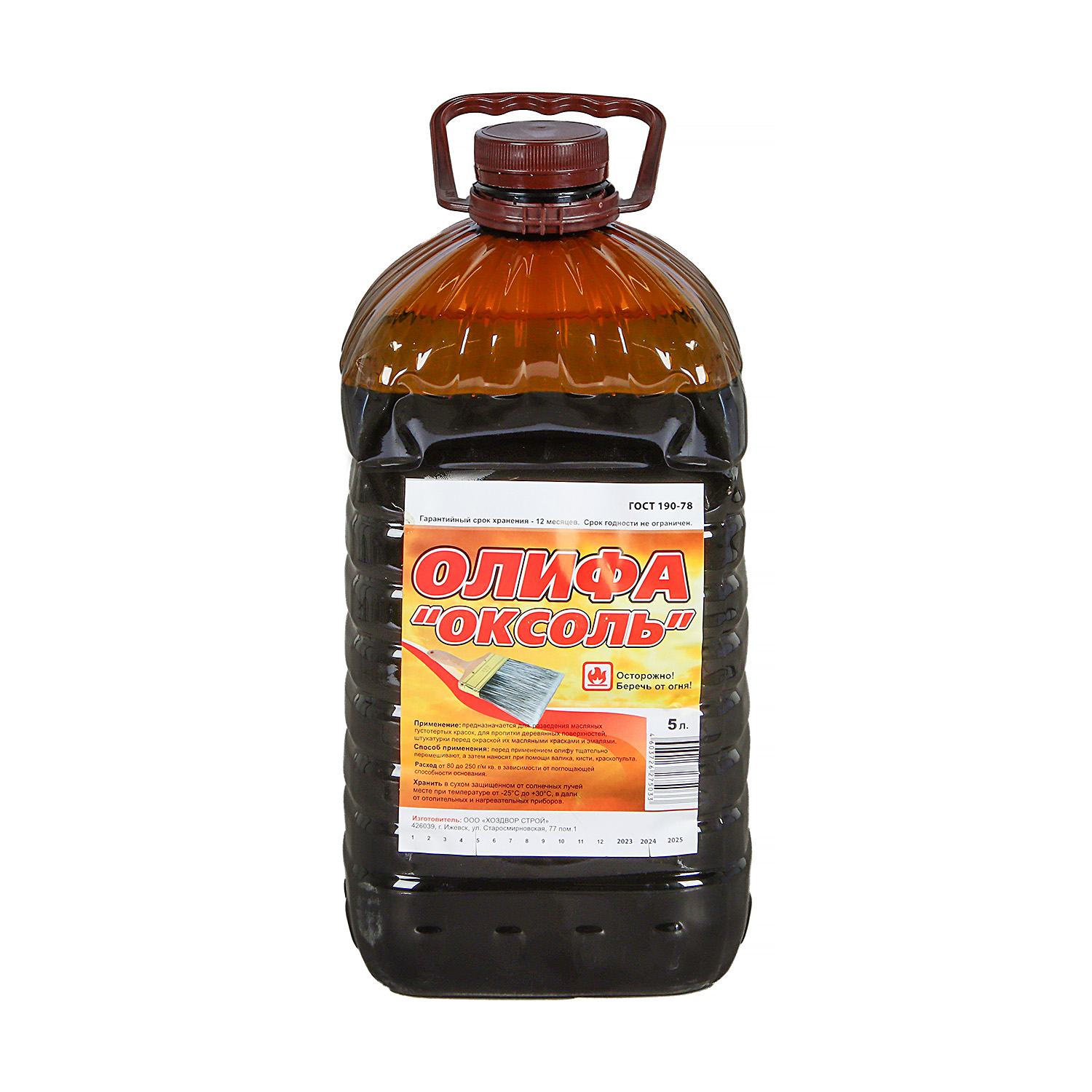 Олифа оксоль предназначена для изготовления масляных красок, готовых к применению, для пропитки деревянных и оштукатуренных поверхностей эксплуатируемых внутри и снаружи помещений под покрытия масляными красками.