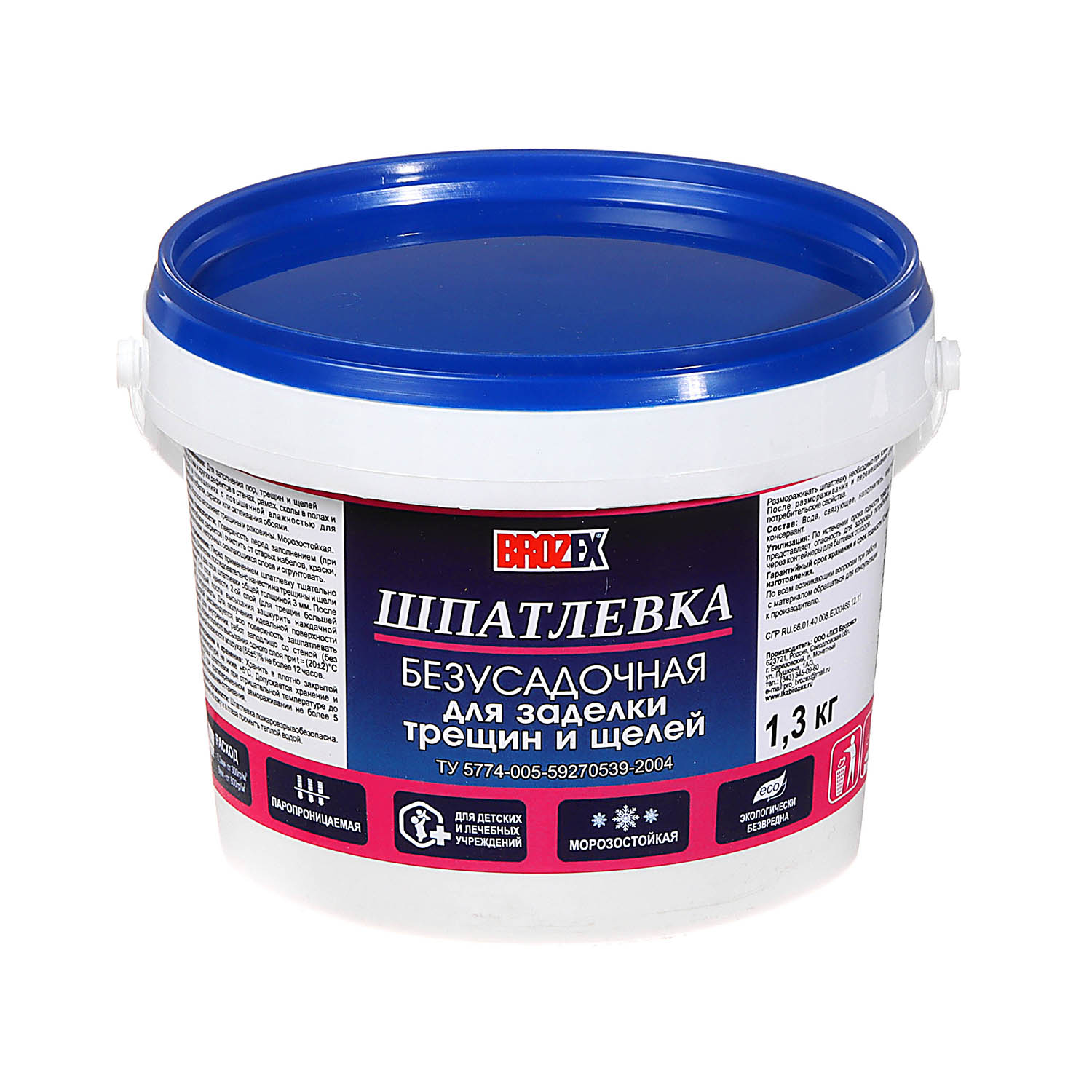 Шпатлевка безусадочная для трещин и щелей BROZEX 1.3 кг хорошо заполняет трещины, раковины и прочие дефекты в стенах, рамах, полах, плинтусах под последующую побелку, окраску или оклеивание обоями. Образует ровное прочное покрытие.