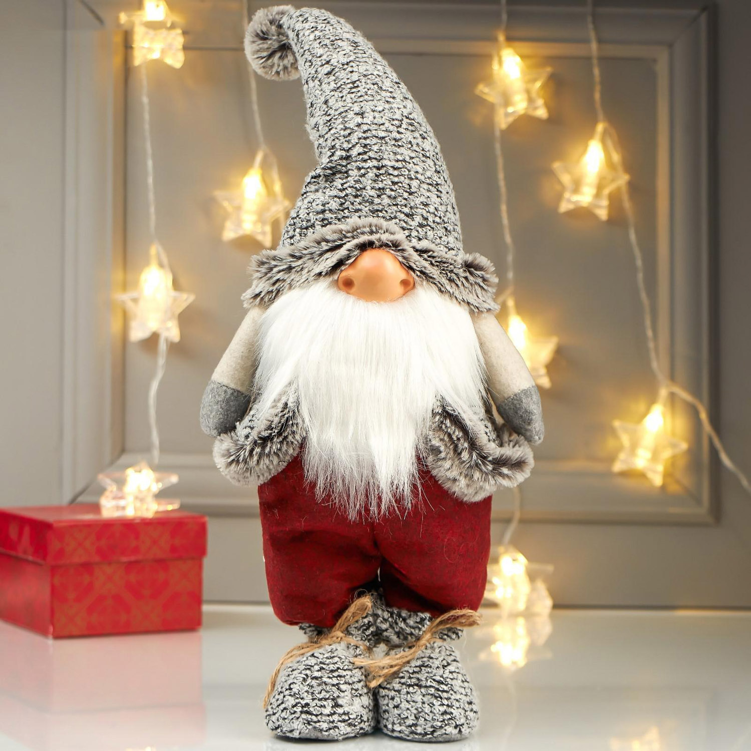 Кукла интерьерная "Дедушка в бордовых штанах и серой куртке" 42х12х17 см 4822653