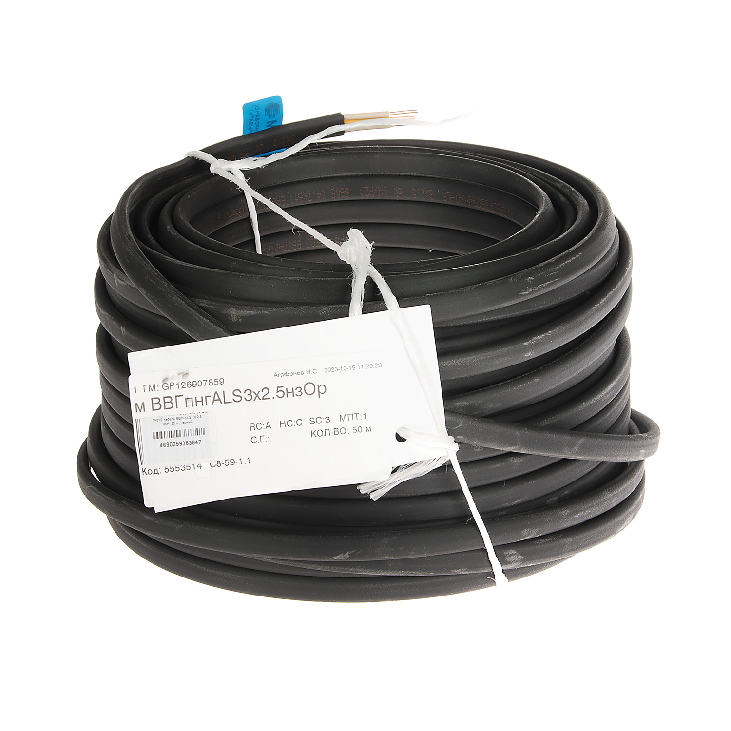 Кабель ВВГнг-LS, 3х2.5 мм², 50 м, черный