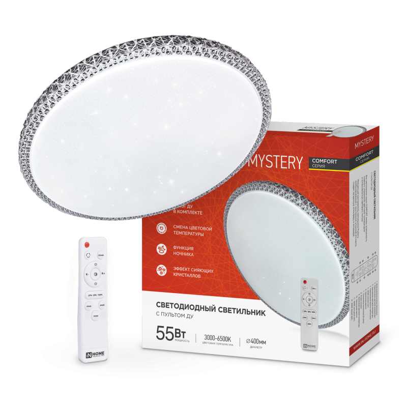 Светильник светодиодный акриловый 400мм 55Вт 3000-6500К COMFORT MYSTERY S=30м2 с пультом *1/3