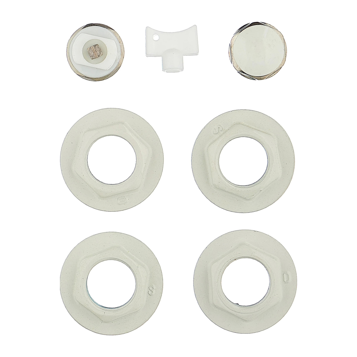 Футорка левая с прокладкой (S) - 2 шт., футорка правая с прокладкой (D) - 2 шт., пробка для футорки