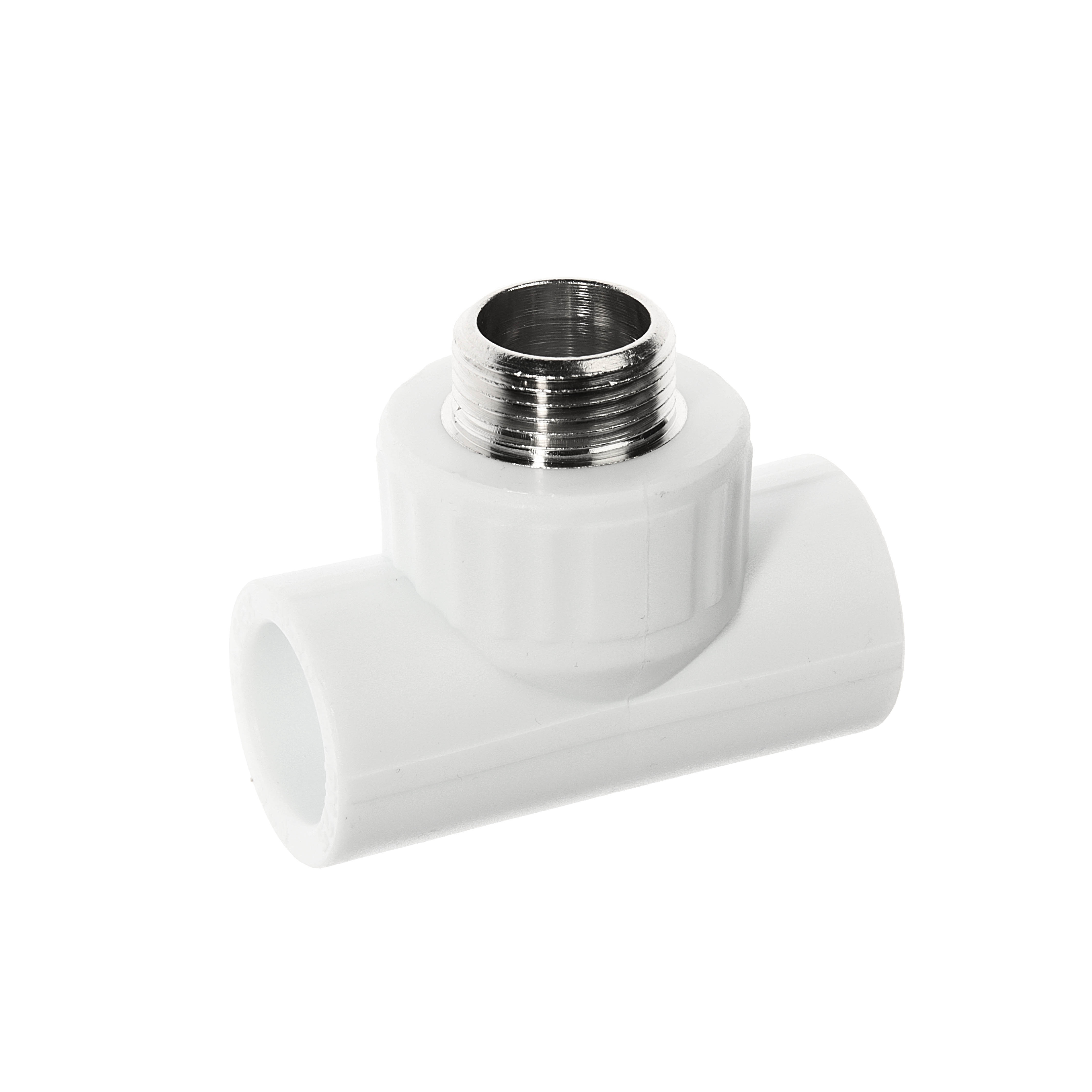 Тройник комбинированный – соединительный элемент комбинированного типа, используемый при создании систем отопления и водоснабжения для развилки труб и организации источников водопотребления. Изготавливается из полипропилена, имеет железную закладку с наружной резьбой для подключения сантехнических приборов и труб. Боковые отверстия предназначены для соединения с трубой посредством сварки.