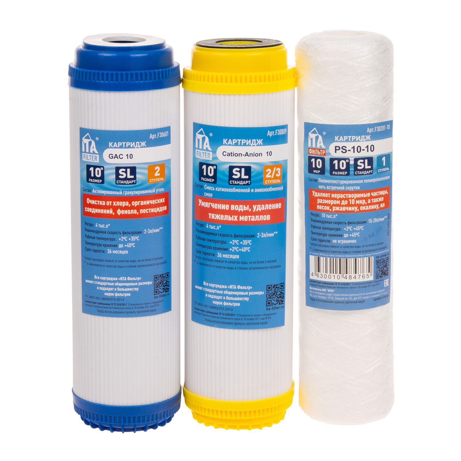 Комплект картриджей для умягчения воды ИТА Фильтр Основа жизни, 3 ступени, 4000 л