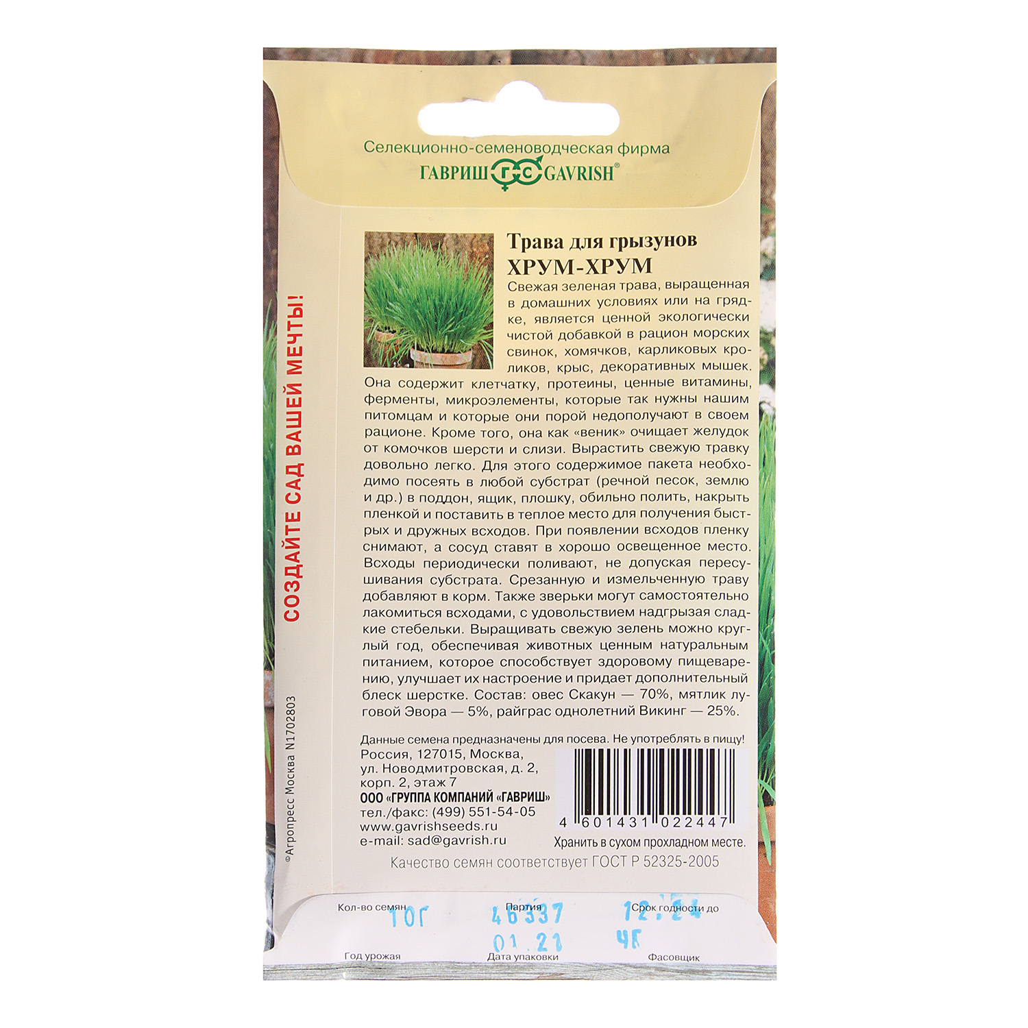 Трава дгрызунов Хрум-хрум 10гр Гавриш *10
