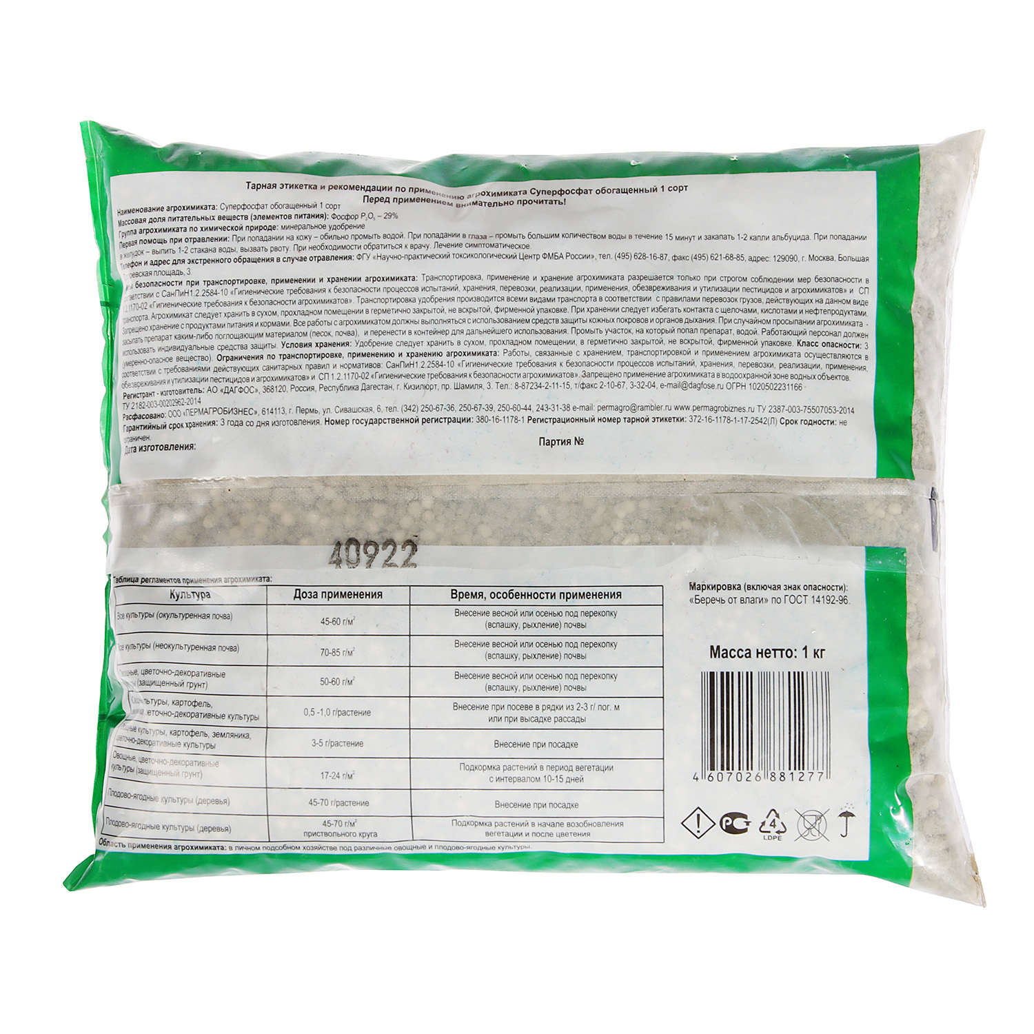 Удобрение суперфосфат обогащенный Пермагробизнес, 1 кг