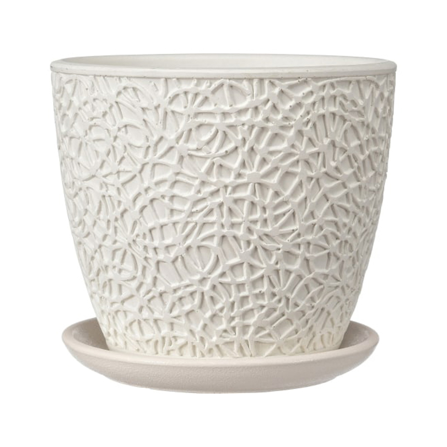 Кашпо бетон "Бутон" "Паутинка" 1,3л d верха 146мм h170мм с поддоном Белый №2 КБ-Б2-178-03 *9