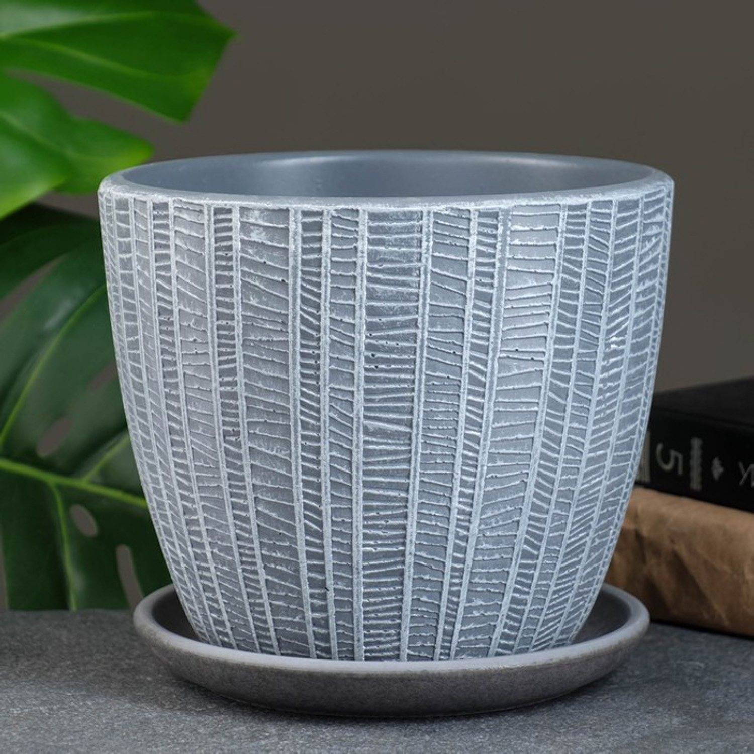 Кашпо керам. "Бутон" "Метро" 2,15л d верха 175мм h152мм с поддоном Светло-серый №3 КС-Б3-111-46 *4