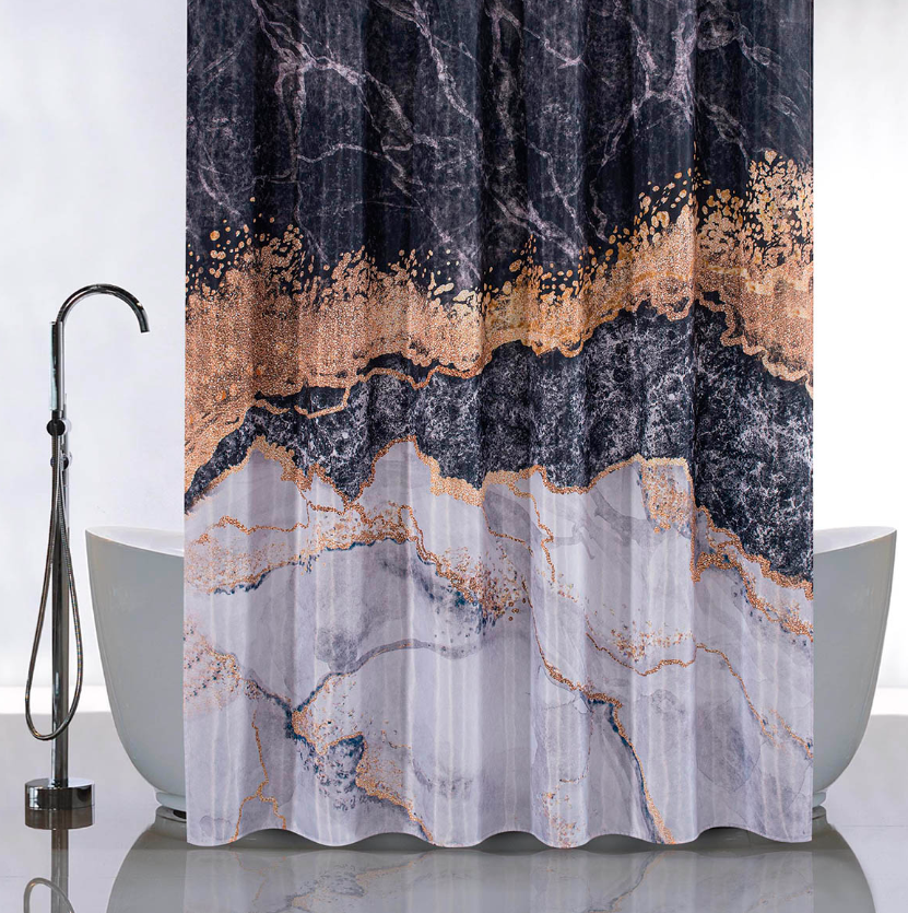 Штора для ванной "Санакс" п/эстер 180*180см "Черный мрамор" без колец 01-81 *1/24