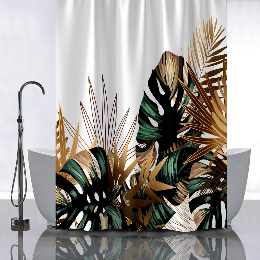 Штора для ванной "Санакс" п/эстер 180*180см "Тропические листья с золотом" без колец 01-111 *1/24