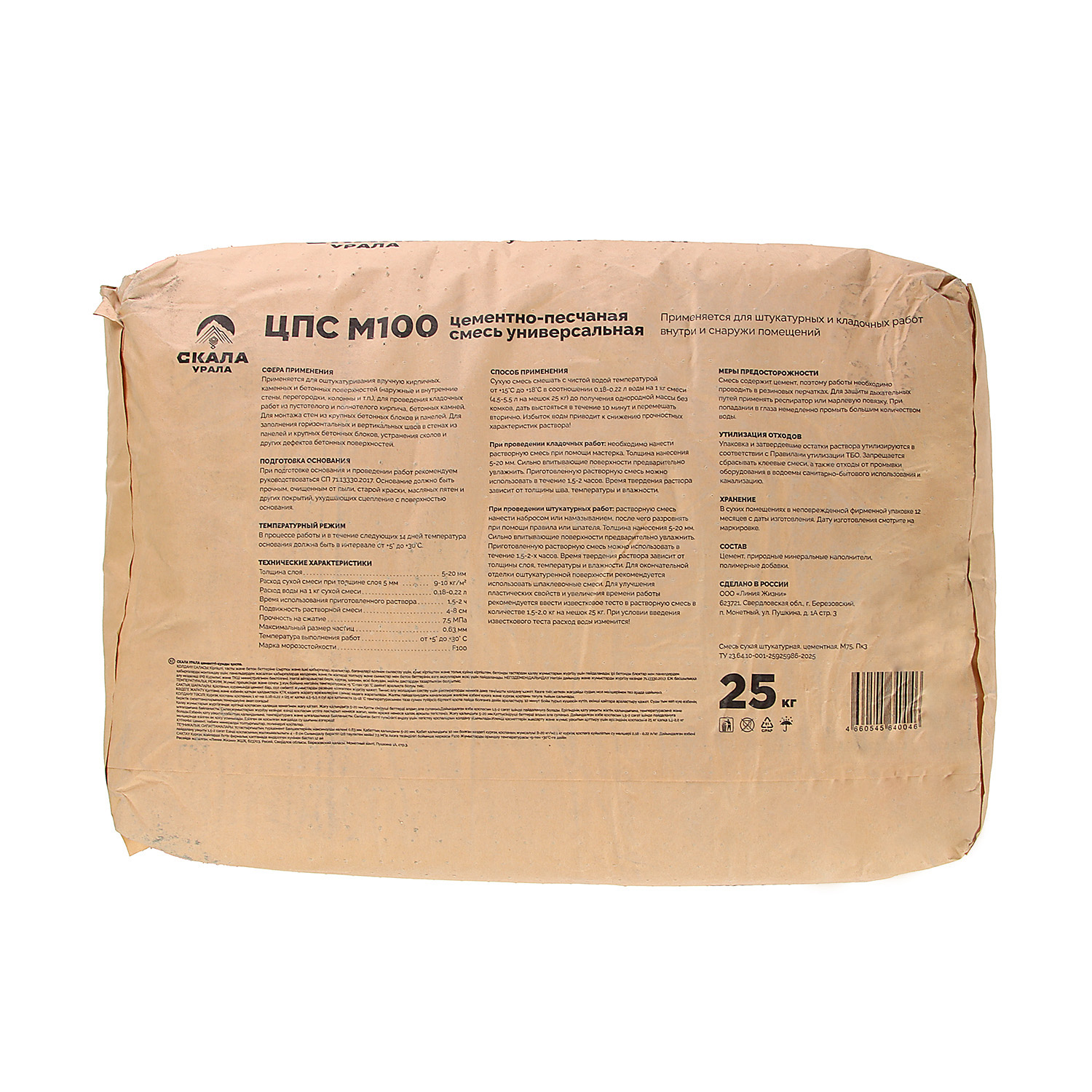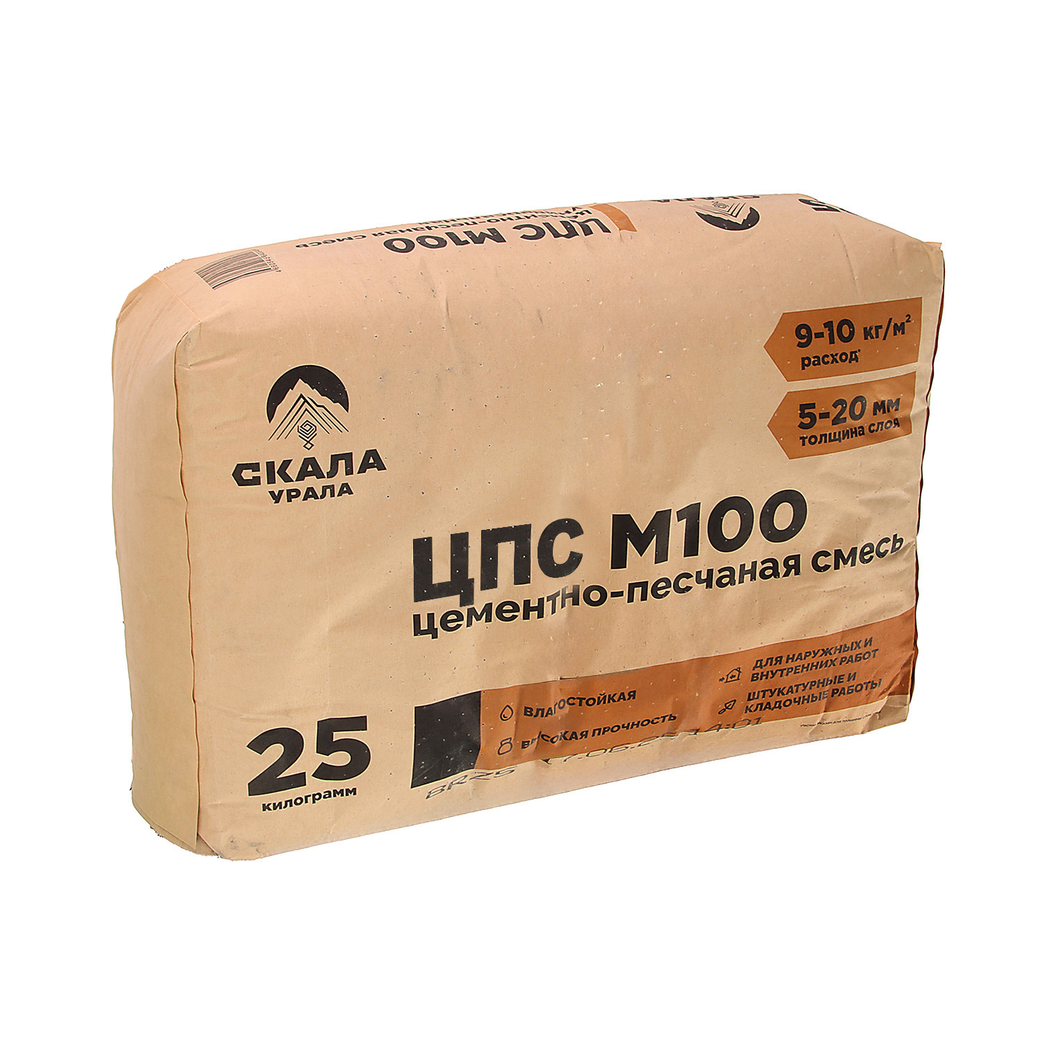 Смесь цементно-песчаная М100 25 кг Скала Урала