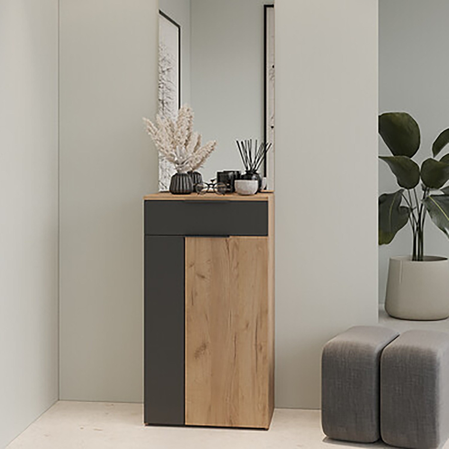 Набор мебели для прихожей АСТИ панель с зеркалом Дуб крафт золотой *1