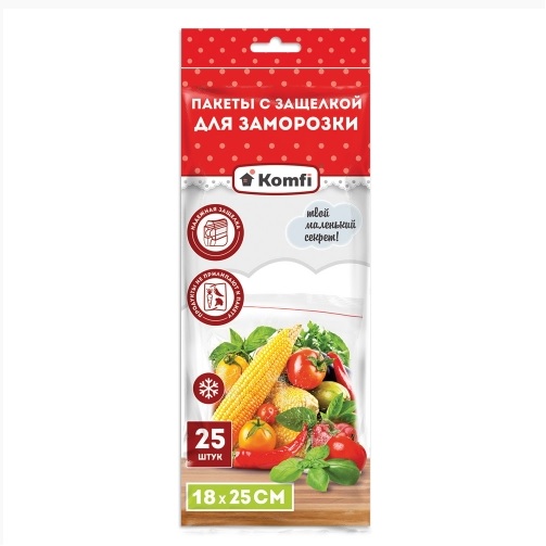 Пакеты для продуктов пэ дзаморозки с защелкой zip-lock 18х25см 25шт в пп HPZ204E Komfi *1100