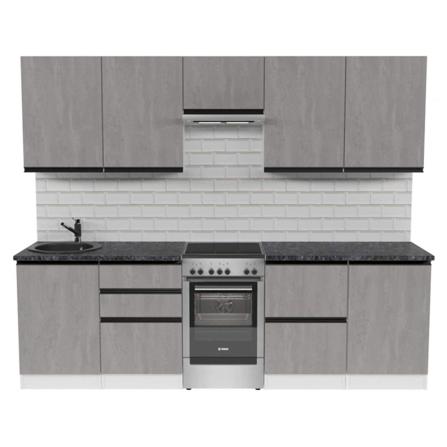 Кухонный гарнитур Сюита мега из ЛДСП в цвете «Бетон светлый» впишется в современный дизайн интерьера. Подойдет как для частного дома, так и для небольшой квартиры. Напольные и подвесные шкафы позволят разместить всю кухонную утварь. Гарнитур состоит из набора шкафов, которые органично комбинируются между собой. Ящики, полки, навесные шкафы, тумбы и пеналы можно менять местами, создавая практичное рабочее пространство.