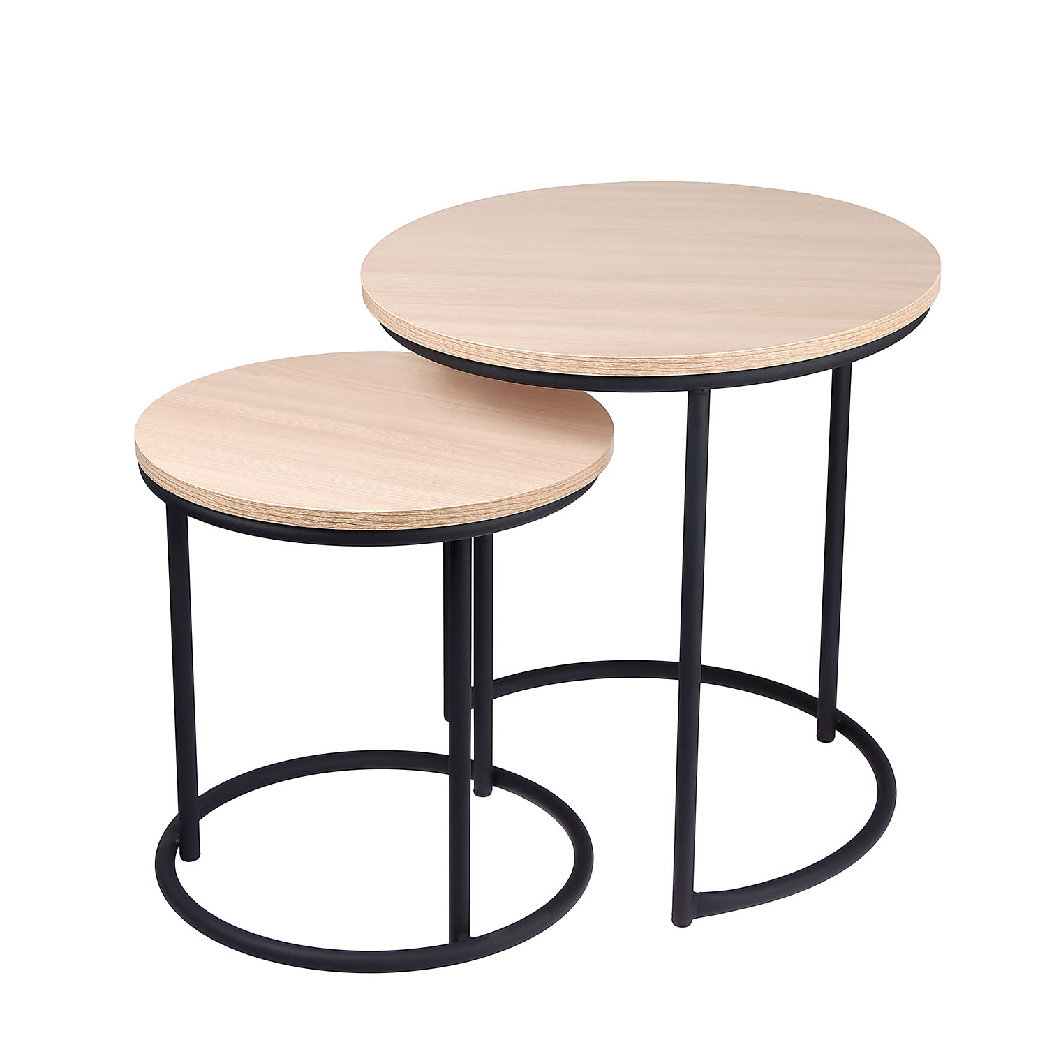Стол журнальный МАТРЕШКА комплект столешниц 2 шт.ЛДСП Шимо светлый+Подстолье труба КРУГЛАЯ ЧЕРНАЯ*1