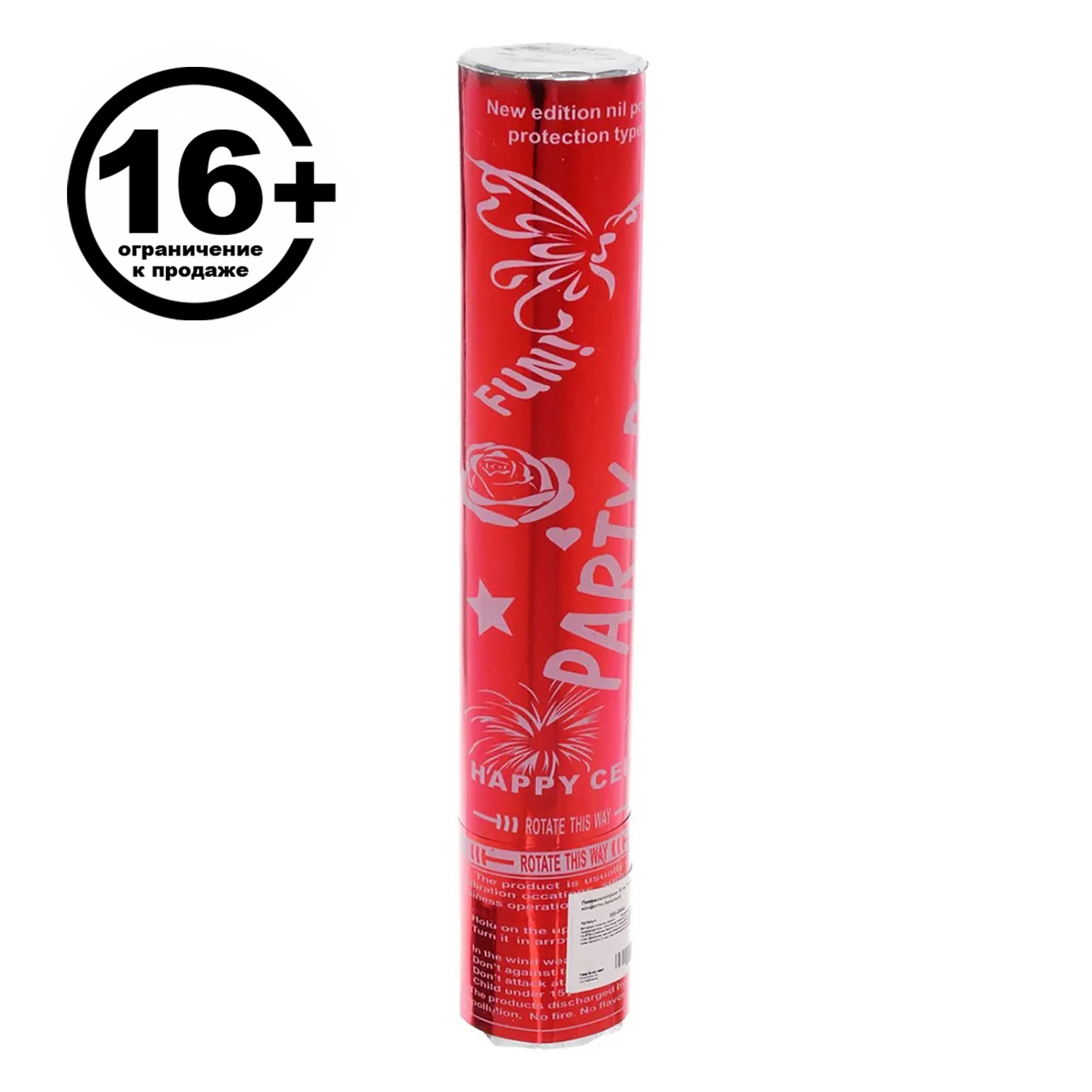 Пневмохлопушка 30 см "Голограмма" конфетти (красный)
