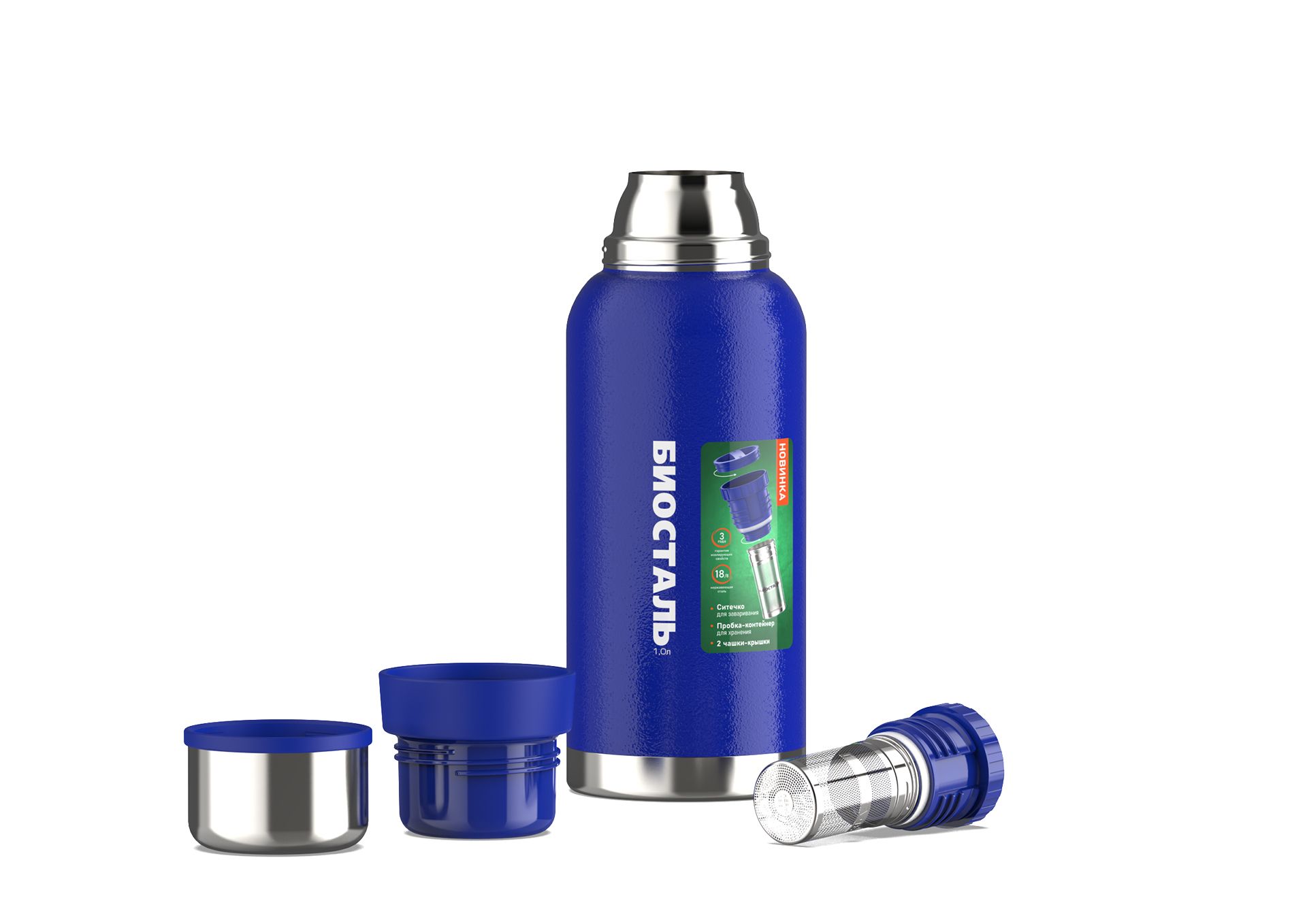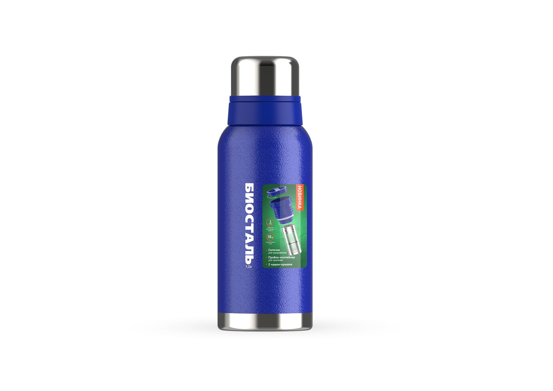 яяяТермос нерж."Биосталь" 1,0л Узк.горло,со вставкой-Ситом д/Завар.+крышка-конт.NBR-1000Z-B *1/12