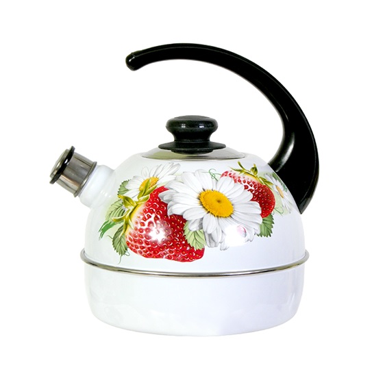 яяяЧайник эмалированный со свистком 3,5л декор "Клубника с ромашкой" Белый Т04/35/03/05 *1/4