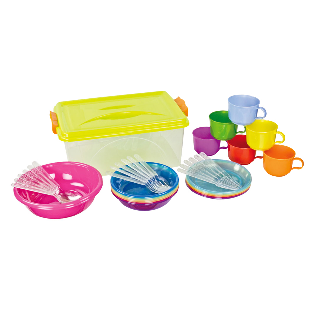 Контейнер 11.5 л, салатник 2 л - 2 шт., кружка - 6 шт., тарелка - 6 шт., ложка - 6 шт., вилка - 6 шт., нож - 6 шт