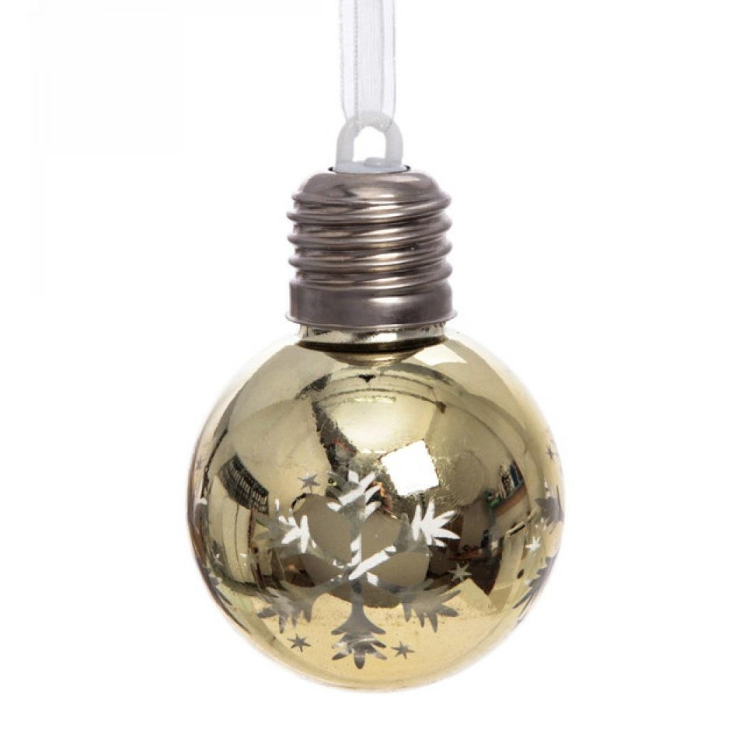 яяяПодвеска ШАР с подсветкой 6 см "Снежинкка", Золото (подсветка Теплый белый)