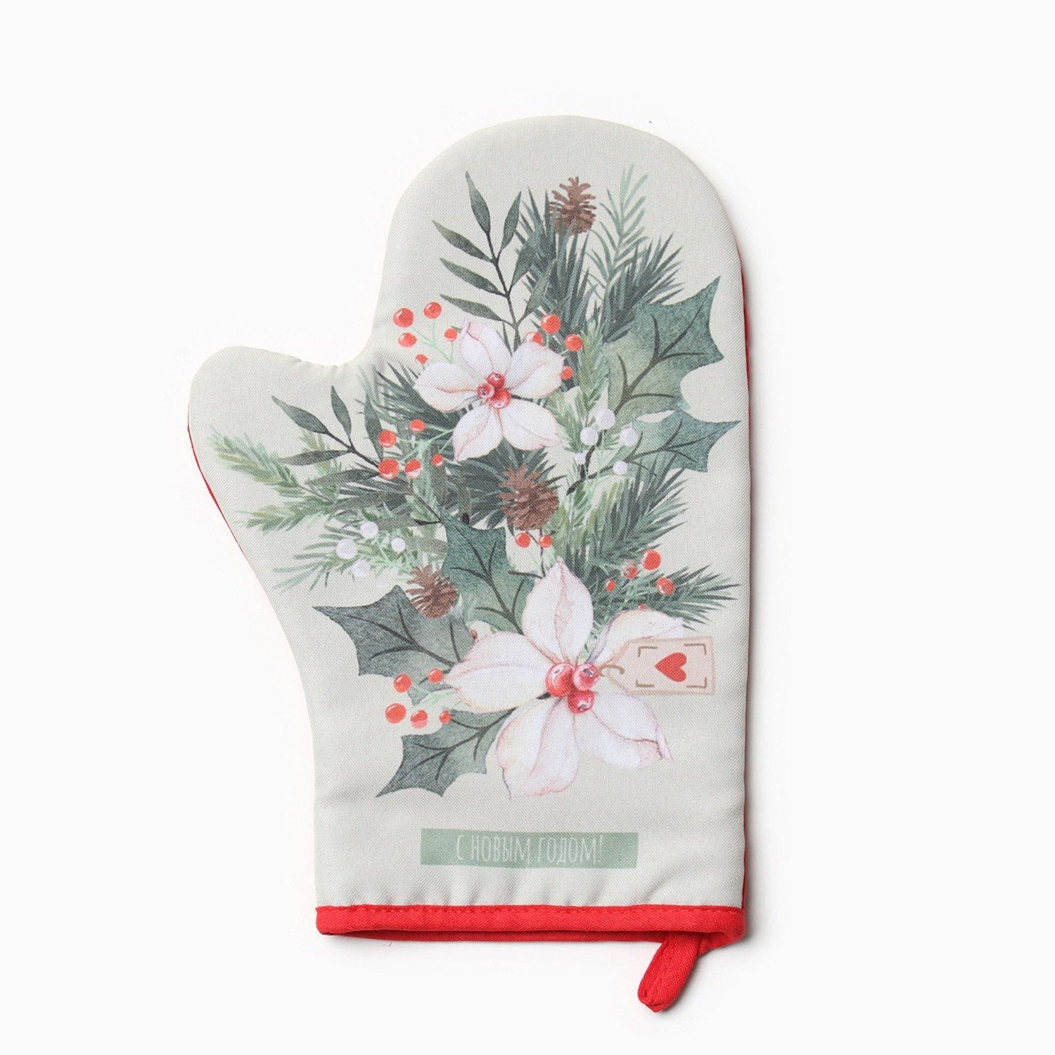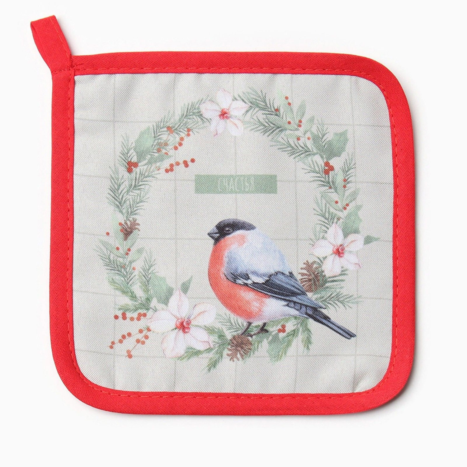 Набор прихваток Доляна «Снегирь», варежка 20х28 см, прихватка 17х17 см, хлопок, п/э, зеленый