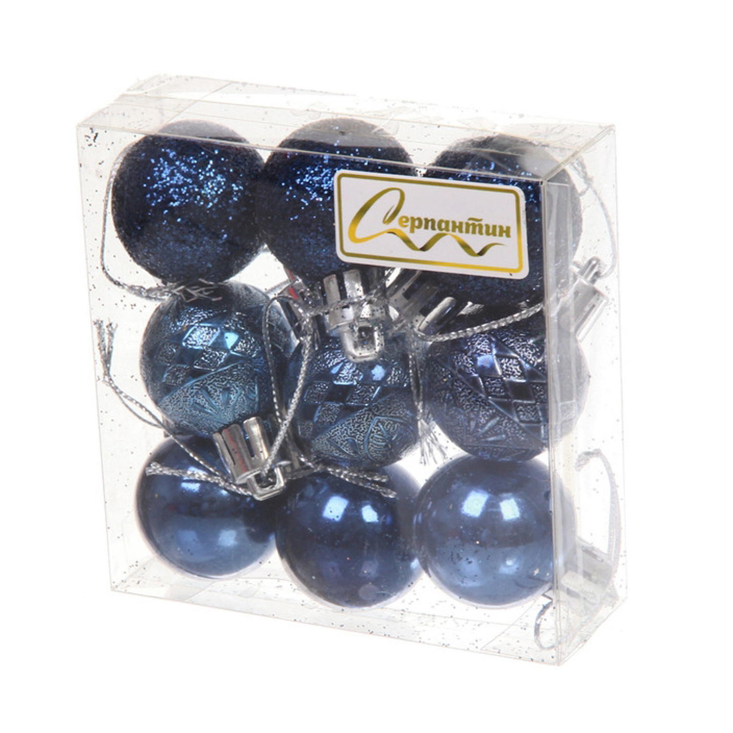 Новогодние шары 3 см (набор 9 шт) «Микс фактур», сапфир