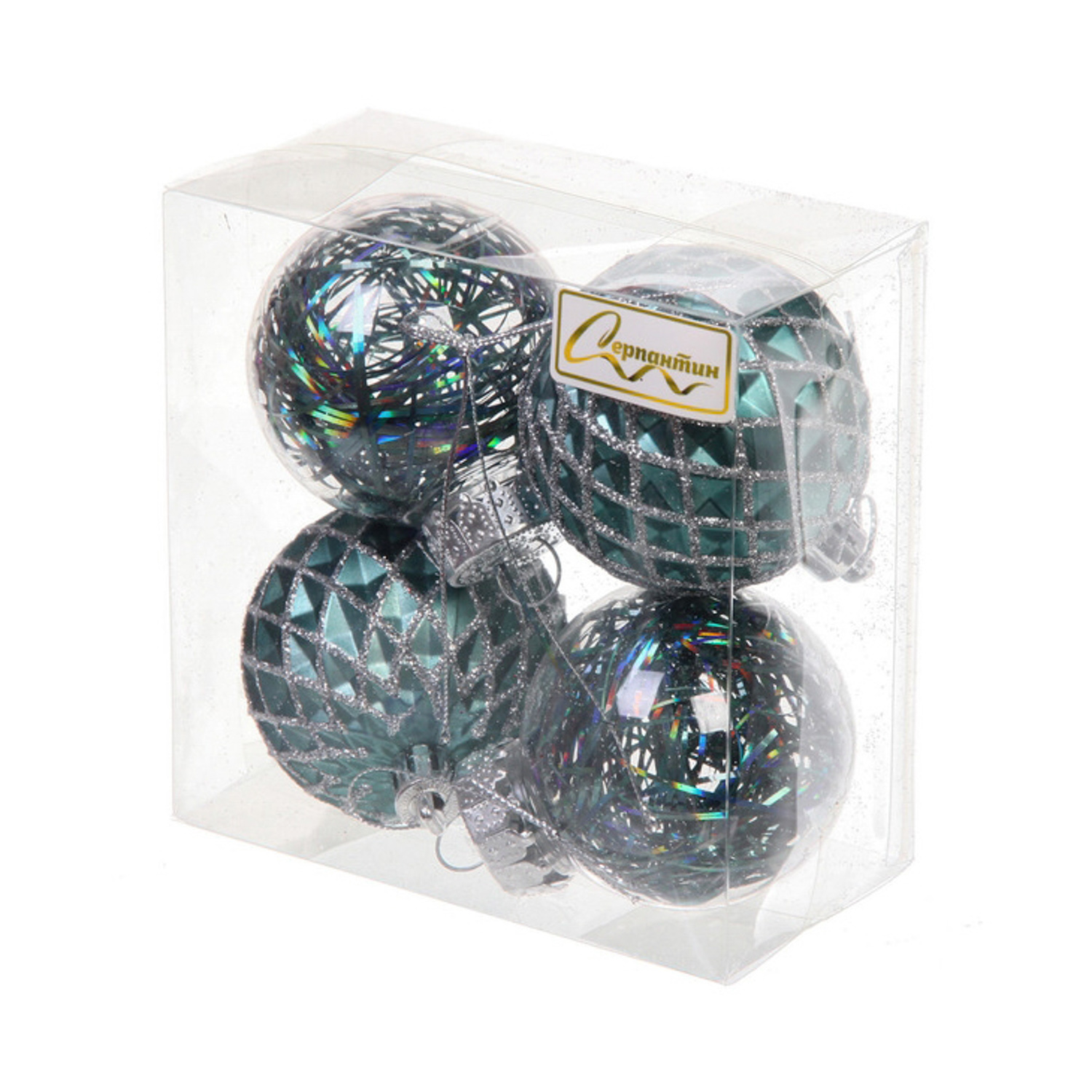 Новогодние шары 6 см (набор 4 шт) "Яркая метель", нефрит/серебро