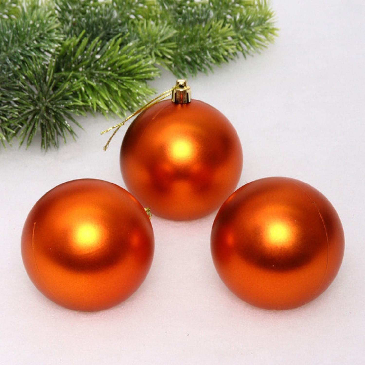 Новогодние шары 8 см (набор 3 шт) "Матовый", янтарь