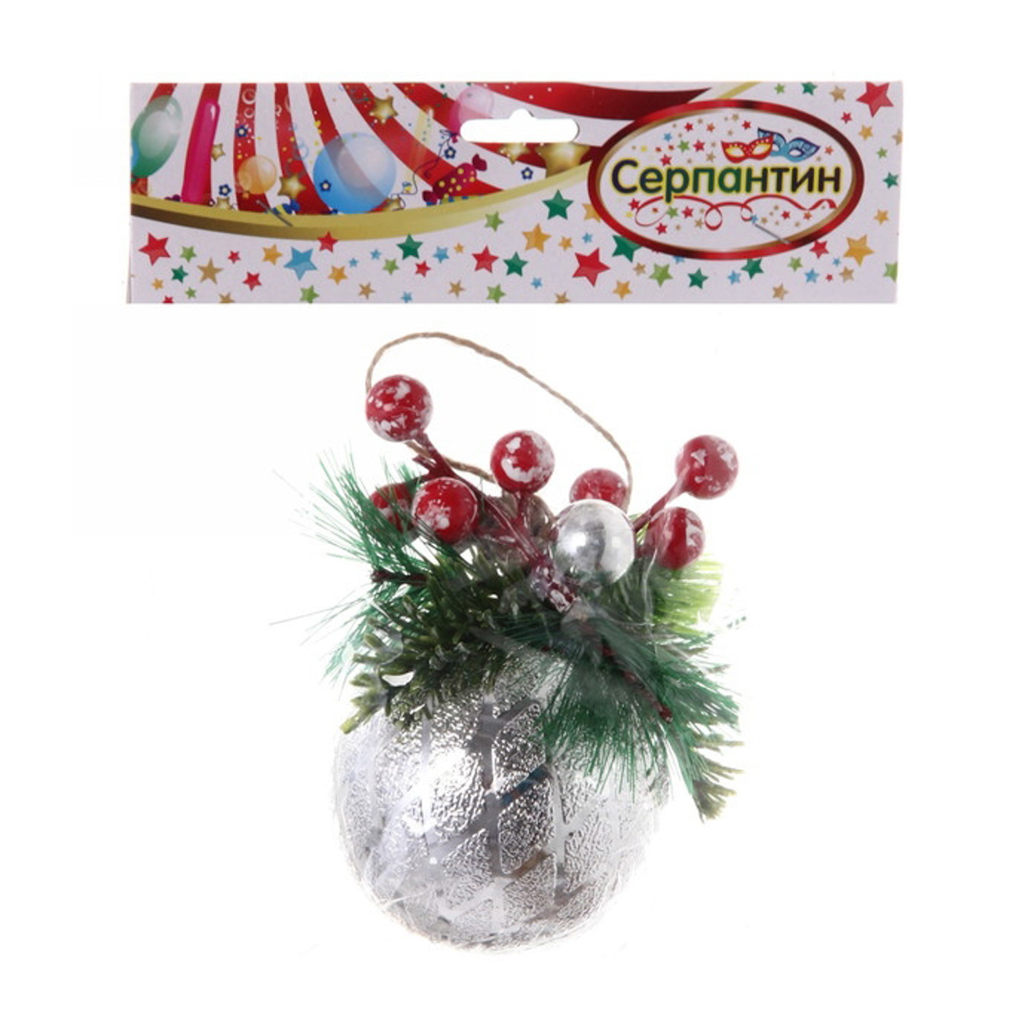 Новогодний шар "Лесная сказка", диаметр 8 см, серебро