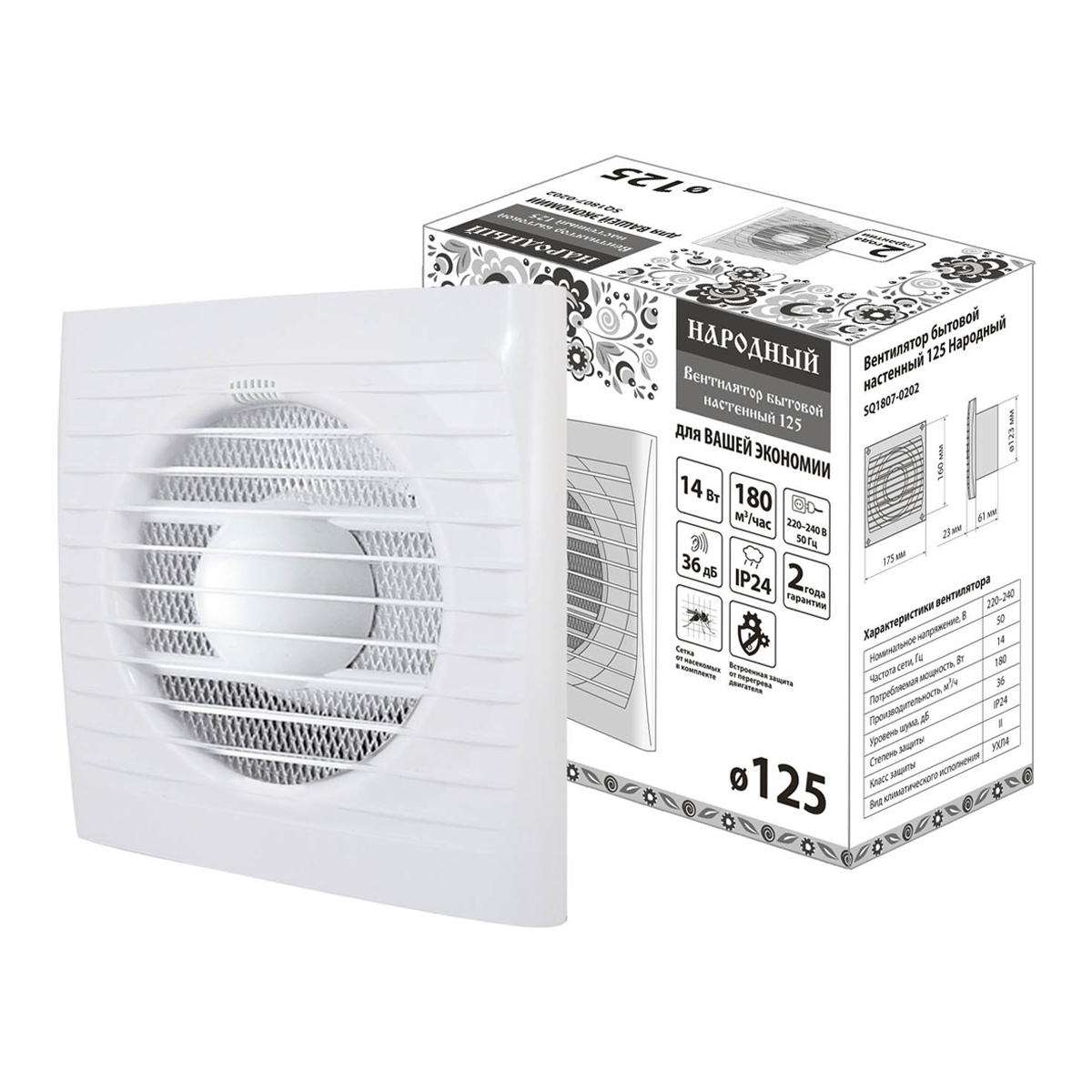 Вентилятор 125 С TDM d125мм настенный Народный SQ1807-0202 *1/6