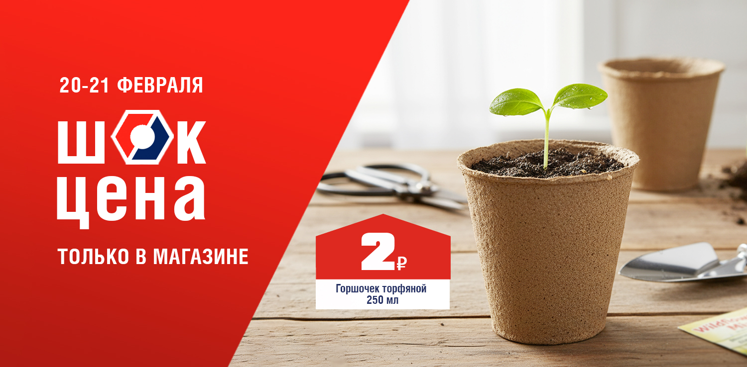 Хотите забыть о пикировке и поврежденных корнях? Торфяной горшочек — ваш надежный помощник. Рассада растет в нем до высадки, а затем отправляется в грунт без стресса и травм. Биоразлагаемый материал горшочка обеспечивает дополнительное питание и идеальную приживаемость. 20 и 21 февраля в розничных магазинах ДомоСтрой не пропустите ШОК-цену: